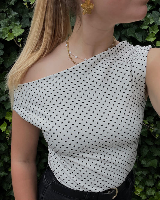 Rose - One Shoulder Top - Polkadot White