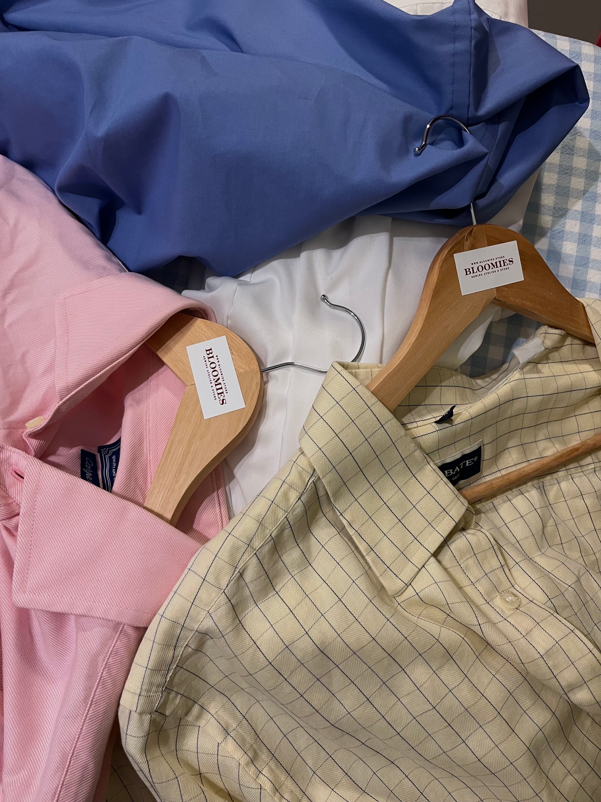 Ik heb een mooie collectie blouses voor je klaarhangen in allerlei kleuren en maten. Tijdens de workshop kies je er eentje uit en die is inbegrepen in de prijs. Liever werken met een blouse met een verhaal, bijvoorbeeld van je vader of uit je eigen kast? Neem die dan vooral mee.